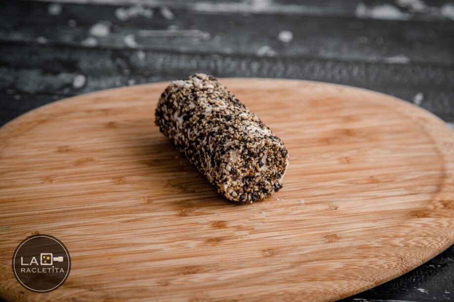 Queso de cabra con una pasta fundida joven y un sabor suave con corteza sabor pimienta